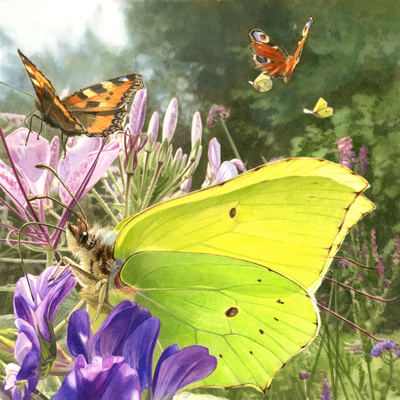 Schmetterlinge sind wunderschön und angewiesen auf vielfältige Gärten. Die Raupen des Zitronenfalters ernähren sich vornehmlich von Faulbaum. Die Raupen des Kleinen Fuchs und Tagpfauenauges fast ausschliesslich von Brennnesseln. Alle drei Schmetterlinge bevorzugen rote und violett blühende Pflanzen (z.B. Kratzdisteln, Blutweiderich). Tagpfauenauge und Kleiner Fuchs ziehen sich im Winter in Höhlen oder Dachstühle zurück. Der Zitronenfalter überwintert in Baumspalten, auf der Unterseite eines Brombeerblatts oder eines Grasbüschels.